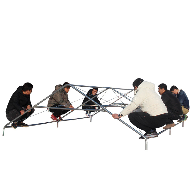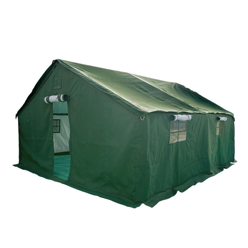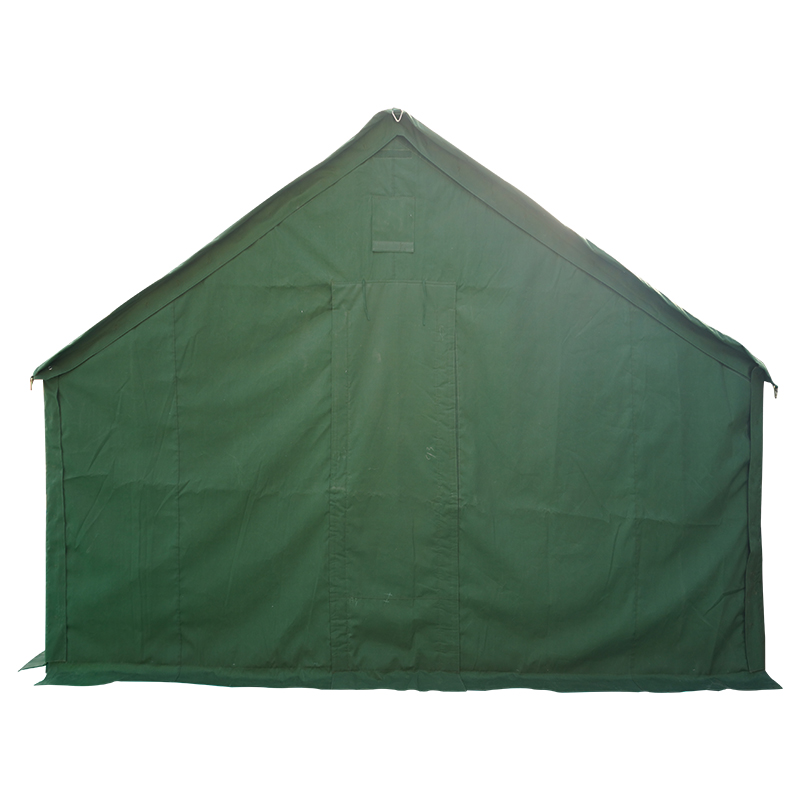 The width of the wall door is 0, 6m, and the door height: 1.44m.Tent style and specifications: The tent is composed of tent, frame and accessories (including triangular piles, hook piles and drawstrings). The tent is a rectangular double-slope straight wall building style. The door is opened on the side of the gable, with two windows on both sides of the wall, and the windows are in the style of six palaces. There is a triangle window on each of the gall. There is a chimney on the side wall, and the whole tent is fixed by a rope connected to the triangular pile.